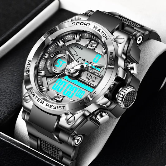 2023 LIGE Sport Men Quartz Digital Watch Creative Diving Watches Men Waterproof Alarm Watch Dual Display Clock Relogio Masculino